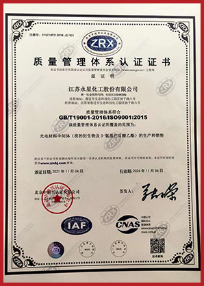 江蘇永星化工股份有限公司成立于2010年,位于江蘇省宿遷市宿豫區(qū)生態(tài)化工科技產(chǎn)業(yè)園揚(yáng)子路6號(hào),注冊(cè)資本3215.463萬(wàn)元,占地105畝,分為南北兩個(gè)廠區(qū)。